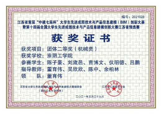 5月29日,第十四届全国大学生先进成图技术与产品信息建模创新大赛省赛在南京工业大学举行,机材学院董育伟等老师指导的2支参赛队伍均荣获江苏省省赛团体二等奖,并荣获晋级全国决赛的资格。