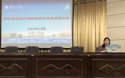 10月20日晚8:00,机材学院学风建设动员大会在图书馆报告厅、12号楼的308、401和402教室同步举行,会议由机材学院党委副书记、副院长王明霞主持。