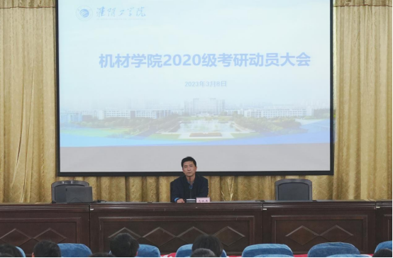 为进一步鼓励2020级学生考研的信心和热情,解答学生在考研方面的疑惑,3月8日,机材学院在图书馆报告厅按专业分两批次召开考研动员大会。学院党委书记马从兵、党委副书记、副院长王明霞出席会议,大会由辅导员王全国主持,全体2020级学生参加了会议。
