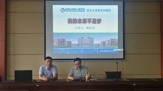 5月16日下午3点,机材学院在15401会议室开展了校友大讲堂系列报告之“我的未来不是梦”报告会。机械设计制造及其自动化专业2007届杰出校友、南京君联软件技术有限公司总经理顾晶龙为机材学院学生做了一场生动的报告。报告由学院党委副书记李炜主持。